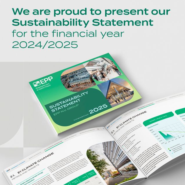 EPP N.V. Sustainability Report covers financial year from 1 September 2024 to 31 August 2025. The document has been prepared in accordance with the European Sustainability Reporting Standards (ESRS), following the adoption of the Corporate Sustainability Reporting Directive (CSRD – Directive (EU) 2022/2464 of the European Parliament and of the Council of 14 December 2022, amending Regulation (EU) No 537/2014, Directive 2004/109/EC, Directive 2006/43/EC and Directive 2013/34/EU as regards corporate sustainability reporting). The report presents consolidated data for EPP N.V. and all its subsidiaries, in line with CSRD consolidation requirements (2022/2464). It also includes information on the implementation of the strategy adopted in 2021, which covers all properties managed by EPP.
