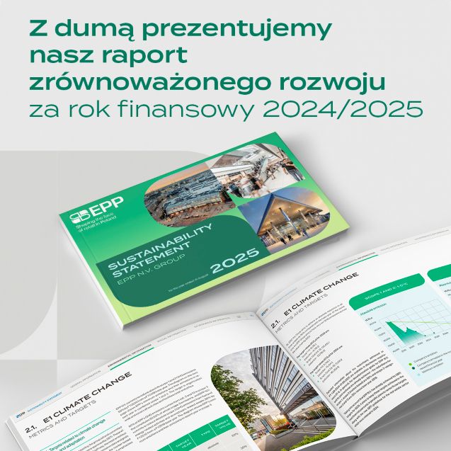 Raport Zrównoważonego Rozwoju EPP N.V. dotyczy roku finansowego trwającego od 1 września 2024 do 31 sierpnia 2025 roku. Dokument został przygotowany zgodnie z Europejskimi Standardami Sprawozdawczości Zrównoważonego Rozwoju (ESRS – European Sustainability Reporting Standards) po przyjęciu dyrektywy w sprawie sprawozdawczości przedsiębiorstw w zakresie zrównoważonego rozwoju dla Przedsiębiorstw (CSRD – dyrektywa Parlamentu Europejskiego i Rady (UE) 2022/2464 z dnia 14 grudnia 2022 roku w sprawie zmiany rozporządzenia (UE) nr 537/2014, dyrektywy 2004/109/WE, dyrektywy 2006/43/WE oraz dyrektywy 2013/34/UE w odniesieniu do sprawozdawczości przedsiębiorstw w zakresie zrównoważonego rozwoju). Raport prezentuje dane w formie skonsolidowanej dla EPP N.V. oraz wszystkich jej spółek zależnych, spójnie z wymogami konsolidacji wg dyrektywy CSRD (2022/2464). Dodatkowo uwzględnione w nim zostały także informacje nt. realizacji strategii przyjętej w 2021 roku, która obejmuje wszystkie nieruchomości zarządzane przez EPP.
